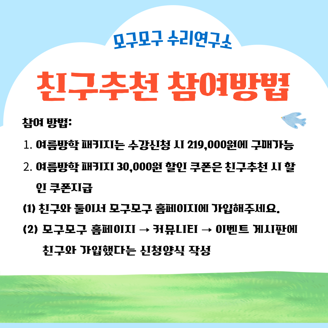 2. 여름방학 패키지 30,000원 할인 쿠폰은 친구 추천시 할인 쿠폰지급