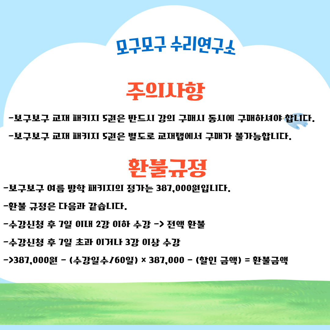3. 교재는 여름방학 패키지 동시 구매시에만 할인 혜택이 제공됩니다.